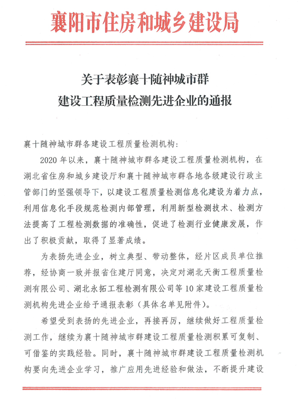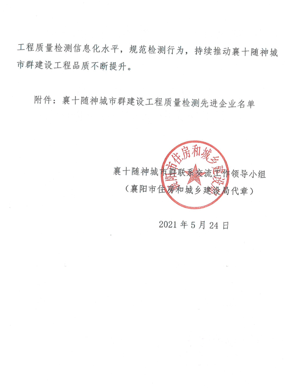 5月28日,由省住建廳、市住建局聯(lián)合主辦,湖北省建筑工程質(zhì)量監(jiān)督檢驗(yàn)測(cè)試中心襄陽分公司承辦的“襄十隨神”城市群建設(shè)工程質(zhì)量新型檢測(cè)技術(shù)運(yùn)用經(jīng)驗(yàn)交流觀摩活動(dòng)在襄陽舉行。